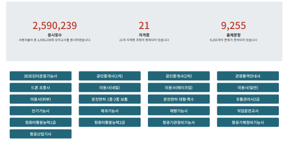 들어가서 드론 조종사 누르시면 관련 모의고사 문제를 풀어 볼 수 있습니다