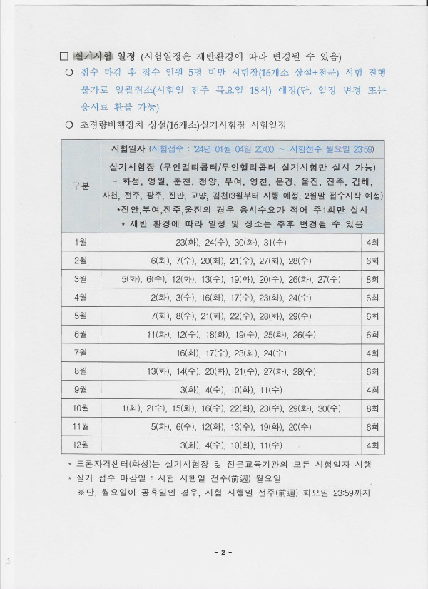 2024년도 초경량비행장치 학과시험 & 실기시험 일정표 페이지 정보 작성자 애플드론관리자 댓글 0건 조회 741회 작성일 24-01-25 11:21 본문 2024년도 초경량비행장치 시험 일정 목록 답변 이전글2024년 조종교육교관 입과 일정표 24.01.25 다음글드론 11월 학과 시험 일정 23.10.12 댓글목록 댓글목록 등록된 댓글이 없습니다.
